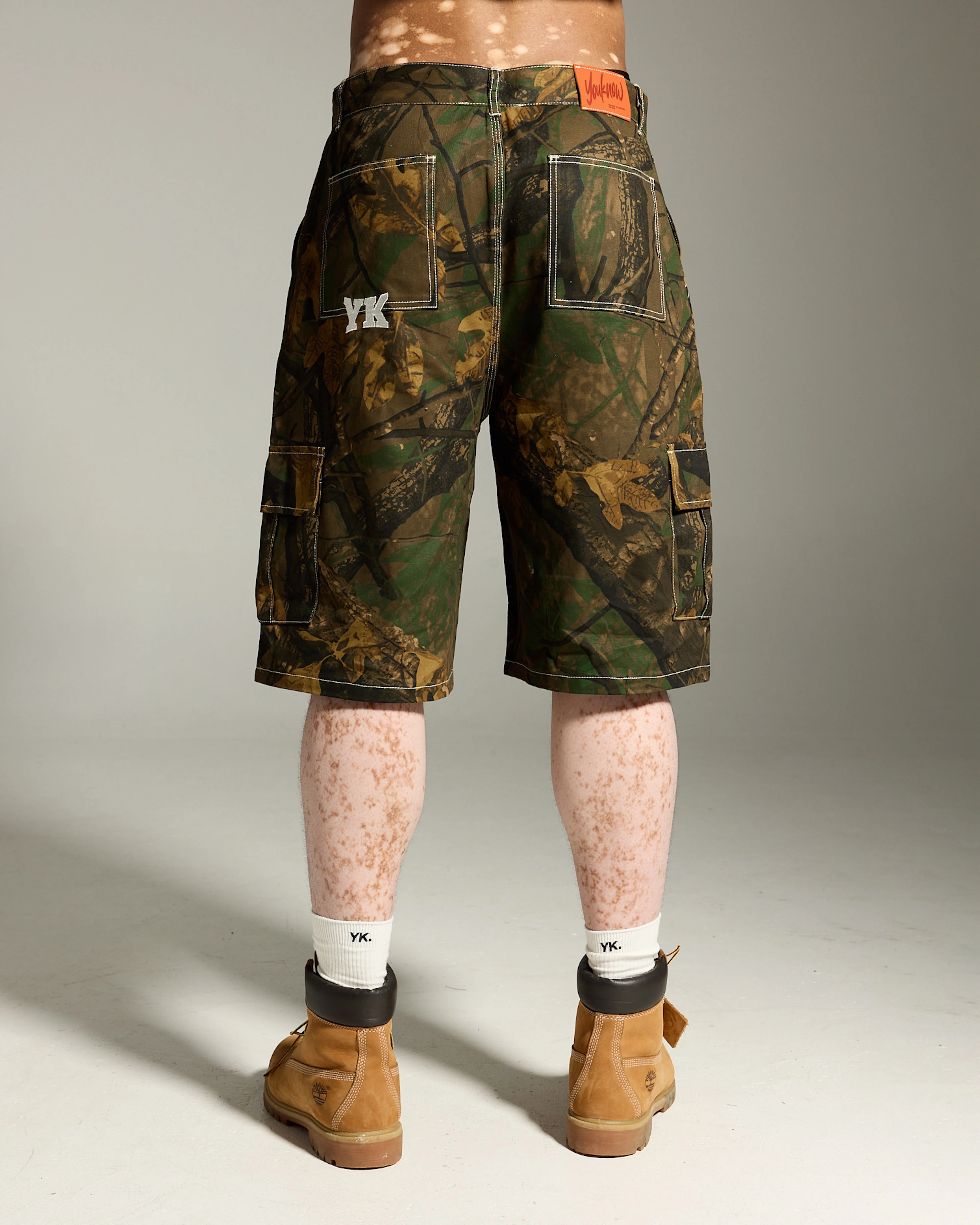 The Cargo Shorts are lightweight and high-rise with a standard fit. Size up for a more relaxed, low-waist look. Designed with belt loops, side cargo pockets, a YK embroidered logo on the back pocket, and finished with a highlight orange leather waistband patch.