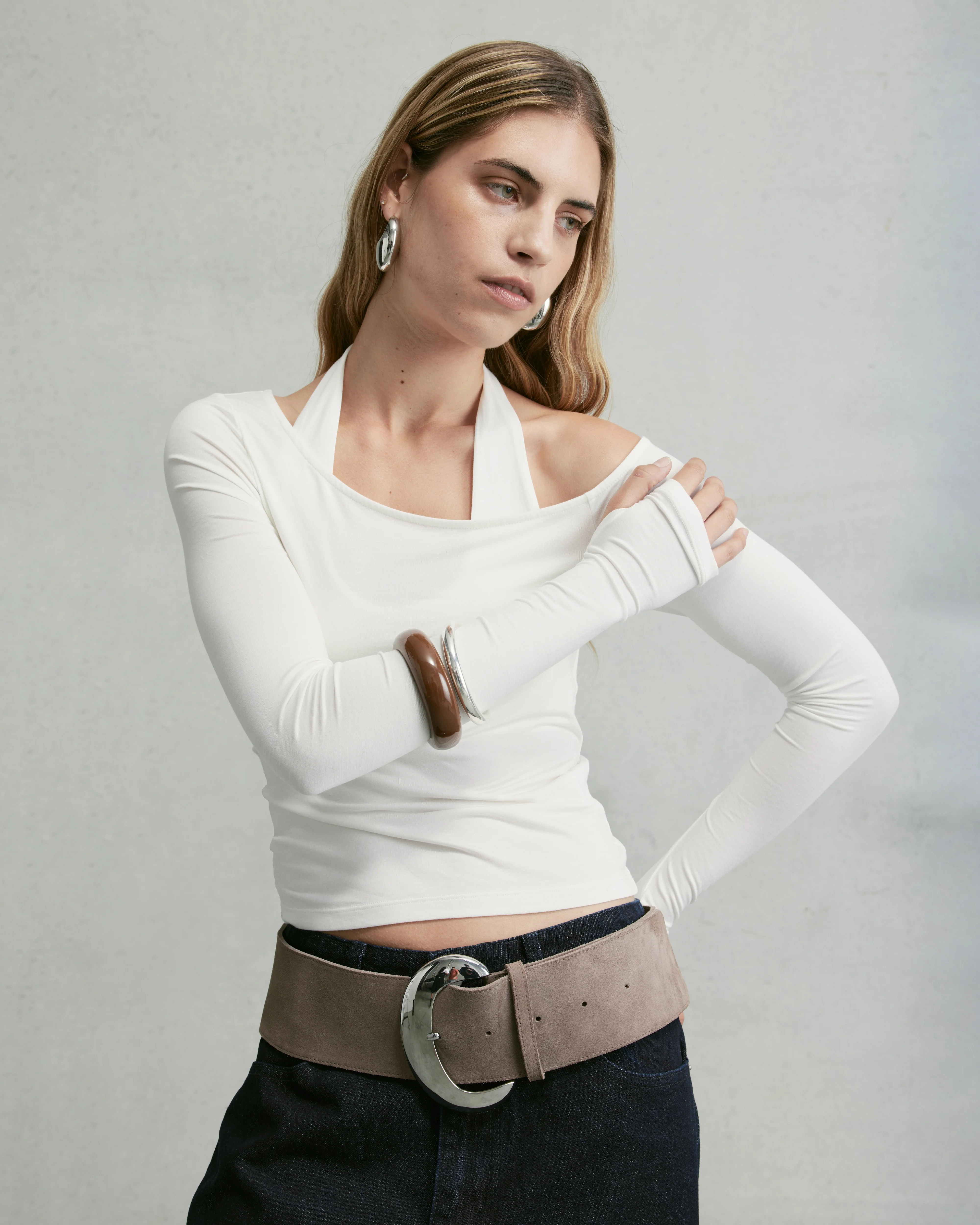 The Nothing Layered Halter LS is crafted from silky, smooth, lightweight fabric with a slim, longline fit. Features a layered effect and a built-in shelf bra with removable pads for support and versatility.